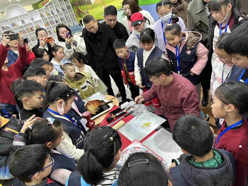 亦糖亦畫,可觀可食是糖畫的獨特屬性。這不,小記者們已經(jīng)按捺不住快要流下來的口水和躍躍欲試的好奇,想要親自上陣大顯身手。小手緊緊抓住勺子,舀起滿滿一勺糖稀,在砧板上顫顫巍巍畫起心儀的圖案來——可怎么回事?自己的手一點也不聽話,一會兒勺子拿低了,糖稀糊在了一起;一會兒勺子拿高了,糖稀斷了線;一會兒手抖了抖,糖稀凝固了……