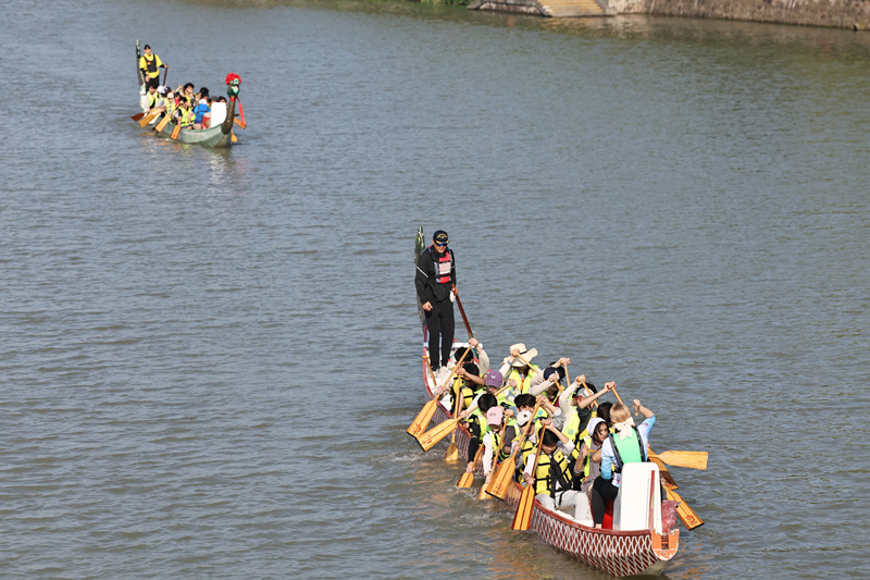 隨后,留學(xué)生們紛紛登上龍舟,開始實踐劃龍舟的技巧。起初,他們感到有些生疏,但隨著時間的推移,大家逐漸掌握了劃槳的要領(lǐng)。在教練的指導(dǎo)下,留學(xué)生們不斷調(diào)整自己的動作和節(jié)奏,力求與隊友保持同步。他們相互鼓勵、互相支持,龍舟也開始在水面上平穩(wěn)地滑行。