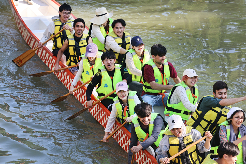 留學(xué)生劃龍舟體驗(yàn)中國(guó)端午民俗