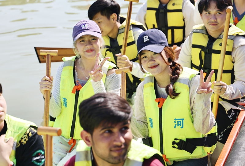 留學(xué)生劃龍舟體驗(yàn)中國(guó)端午民俗