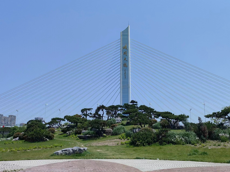 與分水島西島一條外環(huán)西路之隔,就是分水島東島。這里的生態(tài)也別具特色。島頭是成群的黑松,與城閘大橋連在一起,仿佛一幅水墨畫兒。繡球花、薔薇花……正在熱烈綻放中。