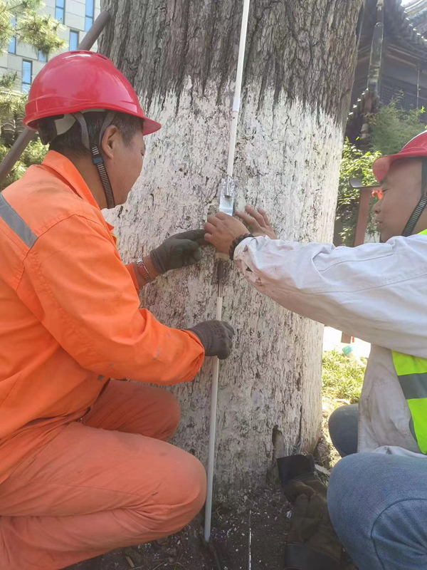 發(fā)布時間:2024-05-20 編輯:王婷 來源:視覺南通網(wǎng)古樹名木,被譽為“有生命的文物”,十分珍貴。我市濠河景區(qū)內(nèi)共有古樹名木70棵,其中一級26棵,二級44棵,樹齡最長的有700多年歷史。市濠河辦歷來都非常重視對古樹名木的保護,每年都安排專項經(jīng)費由專業(yè)的養(yǎng)護公司進行日常養(yǎng)護,以及部分古樹名木的復壯。今年,結(jié)合省里的古樹名木資源普查工作,再次對轄區(qū)內(nèi)的古樹名木進行了拉網(wǎng)式排查,建立“一樹一檔”,全面實施信息化管理;同時,根據(jù)市民要求以及實際情況,經(jīng)過專家論證后,決定分批次對部分古樹名木進行避雷針的安裝,進一步加強在特殊惡劣天氣對古樹名木的保護。