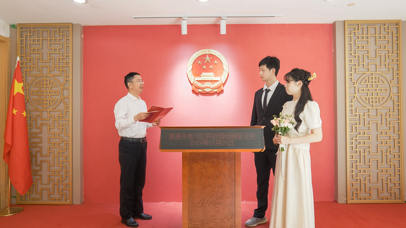 組織部長頒證、免費(fèi)攝影、贈(zèng)送玫瑰……崇川區(qū)婚姻登記處甜蜜護(hù)航新人領(lǐng)證
