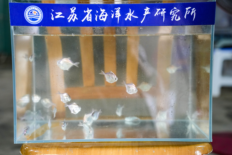 苗種是現(xiàn)代漁業(yè)的“芯片”。江蘇海洋生物資源豐富,但海水魚類養(yǎng)殖業(yè)卻一直是“短板”。從2012年起,江蘇省海洋水產(chǎn)研究所開始著手研究銀鯧人工繁育。銀鯧是名貴海水魚類,俗稱“白鯧、鯧鳊魚”,肉質(zhì)鮮美,市場需求大。然而,它在養(yǎng)殖業(yè)內(nèi)是出了名的難養(yǎng),一是因為它個性膽小脆弱,一旦受驚或短時離水,都會很快引起死亡;二是人工馴化后成魚產(chǎn)卵質(zhì)量不穩(wěn)定;三是極端“挑食”,馴化難度大,喜歡吃水母和各種啫喱狀的浮游生物,尚無專門的人工飼料。