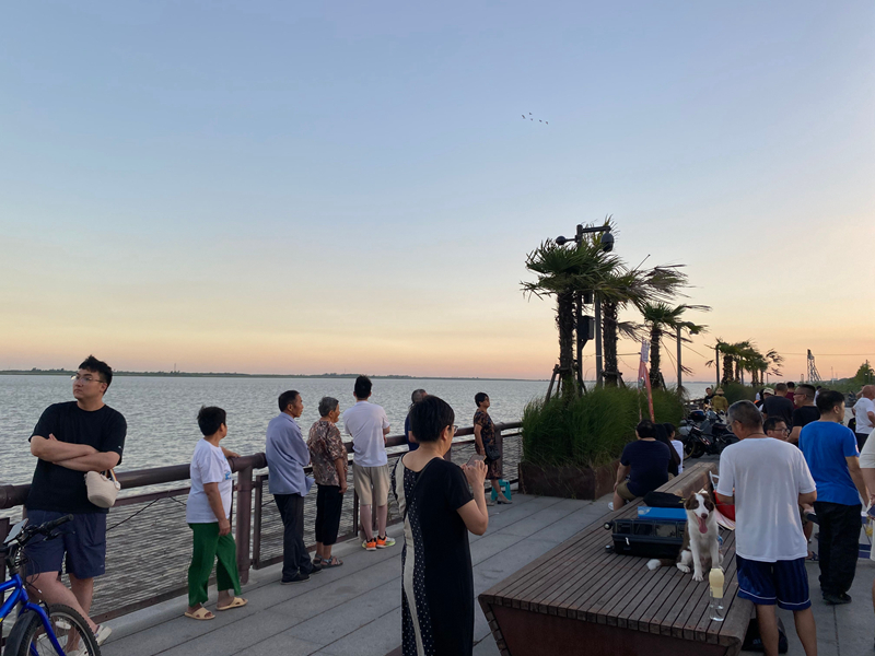 站在親水平臺(tái)前,吹一吹江風(fēng);坐在船舶造型的木椅上,與老友閑聊……日前,青龍港畔的文化夜市熱鬧非凡,眾多市民和游客坐在江邊吹江風(fēng)、吃美食,感受著初秋的繁華和煙火氣。“化工園區(qū)變生態(tài)景區(qū),環(huán)境一改老百姓的幸福就來(lái)了?!鼻帻埜鄣牡冏尷先龔S人王輝深有感觸。