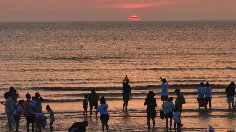 早在2000年元旦,啟東因?yàn)橛颖臼兰o(jì)江蘇的第一縷陽(yáng)光而聞名遐邇。一晃近24年,今年“啟東日出”再度回到大眾的視野。7月23日,啟東當(dāng)?shù)匕l(fā)現(xiàn)在南通大學(xué)杏林學(xué)院(啟東校區(qū))的東側(cè)海灘有上百人趕海看日出。此后隨著社交平臺(tái)上的話題不斷發(fā)酵,游客數(shù)量開(kāi)始呈現(xiàn)幾何級(jí)的增長(zhǎng)。到8月3日、4日左右,每天數(shù)以萬(wàn)計(jì)的游客涌入這座濱海城市。