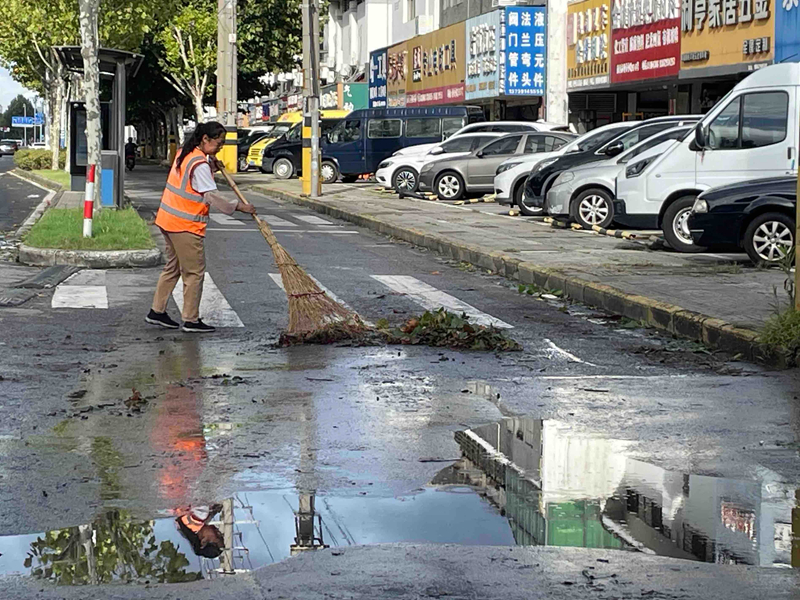 發(fā)布時(shí)間:2024-09-18 編輯:王婷 來(lái)源:視覺(jué)南通網(wǎng)受臺(tái)風(fēng)“貝碧嘉”影響,部分路段一片狼藉,道路殘枝、落葉、淤泥,垃圾增多,窨井口被雜物堵塞,興環(huán)環(huán)衛(wèi)應(yīng)急小分隊(duì)迅速轉(zhuǎn)變?yōu)榍謇硇》株?duì),對(duì)轄區(qū)內(nèi)的保潔情況進(jìn)行了全面排查。市區(qū)五一路上,興環(huán)環(huán)衛(wèi)濠東所保潔員徐小格用大掃把清掃滿地的落葉樹(shù)枝,再由同事張小麗配合用小掃帚掃到簸箕里,倒到三輪保潔車(chē)的垃圾桶里。徐世軍開(kāi)著垃圾清運(yùn)吊桶車(chē)前來(lái)支援,幫助他們一起將裝滿落葉、樹(shù)枝雜物的垃圾桶掛在吊桶車(chē)后面,傾倒壓縮處理。