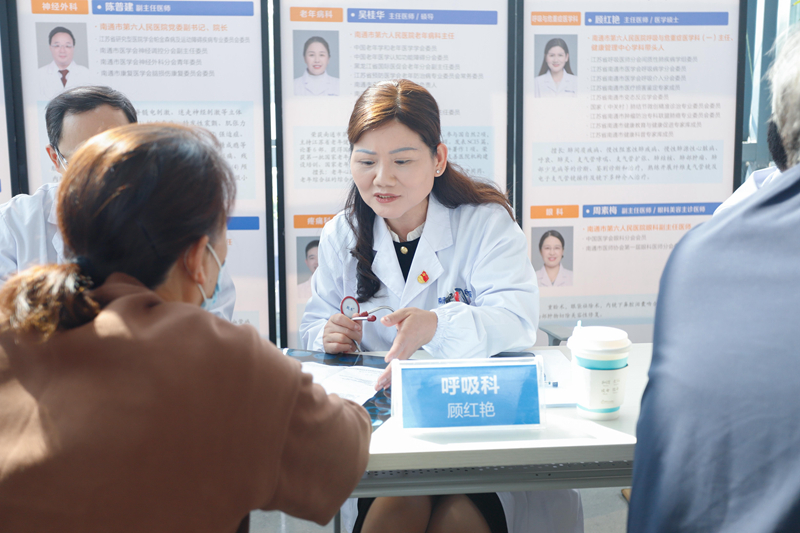 來自通大附院及市直醫(yī)院老年醫(yī)學(xué)科、呼吸與危重癥醫(yī)學(xué)科、心血管內(nèi)科、神經(jīng)內(nèi)科、全科醫(yī)學(xué)中心、疼痛科、神經(jīng)外科等多學(xué)科的10余名專家為現(xiàn)場(chǎng)群眾提供了免費(fèi)問診咨詢服務(wù)和健康指導(dǎo)。在綜合門診大廳健康家隅書吧,醫(yī)院精心準(zhǔn)備了重陽糕與養(yǎng)生茶,為長(zhǎng)者送上“步步高升、壽高九九”的美好祝福。