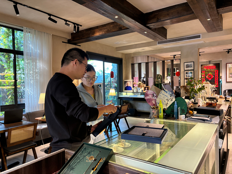 23日上午,就在記者采訪期間,靠口口相傳、慕名前來選購的顧客不斷,有自用、有用于單位活動伴手禮,更有定制專屬禮品,大家對所見之物愛不釋手。張蕾說:“在產(chǎn)品生產(chǎn)的過程中,我們還保留了手工的溫度,我想這也是非遺能夠給人帶來溫暖的價值所在。”目前,沈繡一莊與觀復博物館、蘇州誠品書店、上海駱新書房等場館合作設(shè)有線下實體商店,同時擁有微信小程序商城,支持線上購物配送到家。