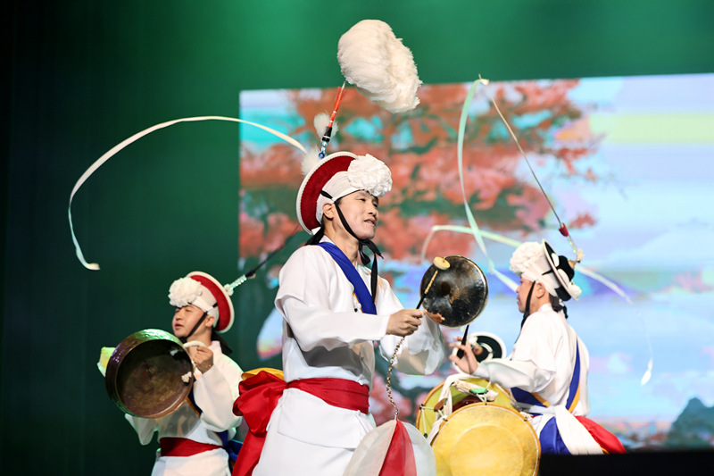 江海交匯,中韓音樂(lè)在此和諧共鳴。面對(duì)韓國(guó)藝術(shù)家的“走心”互動(dòng),南通敞開(kāi)懷抱,以音樂(lè)為舟,以藝術(shù)為橋,開(kāi)啟這場(chǎng)雙向奔赴的文化共舞。來(lái)自南通藝術(shù)劇院的演員們通過(guò)鼓樂(lè)《蘭陵王入陣曲》,奏響中韓文化交流的開(kāi)篇樂(lè)章。緊接著,笛子與樂(lè)隊(duì)《秦川情》、民族器樂(lè)合奏《花好月圓》、二胡與樂(lè)隊(duì)《江南春色與揚(yáng)州小調(diào)》、越劇表演唱《風(fēng)梅圖·如夢(mèng)如幻蘭山行》、琵琶與樂(lè)隊(duì)《春江花月夜》、民族室內(nèi)樂(lè)《望歸帆》、民族器樂(lè)合奏《金蛇狂舞》、戲曲與民樂(lè)《象王行》等節(jié)目輪番上場(chǎng),讓大家在享受國(guó)風(fēng)雅樂(lè)的同時(shí),感受中華文化的豐富內(nèi)涵。