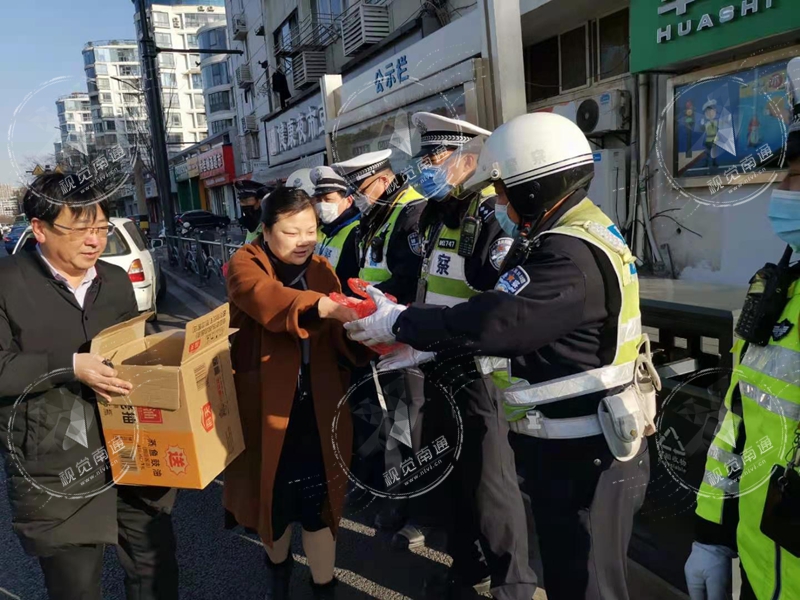 “前不久在媒體報道中看到你們的口哨都結(jié)冰了,我們便商量送點御寒的食物,希望這粥能為你們抵御寒冷,提供能量。”慰問人員一邊向整齊列隊的交警問好,一邊親手將粥品遞上。一杯杯滿含敬意與問候的溫暖,傳遞濃濃關(guān)懷,令交警們動容。