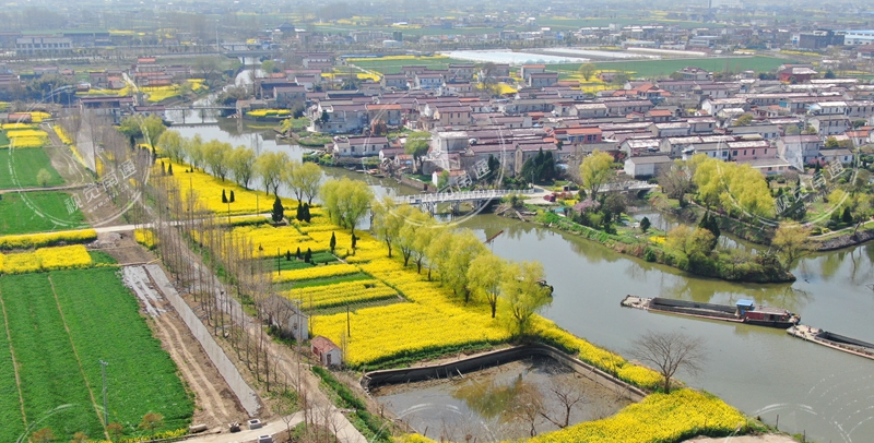 瞰海安青墩遺址 柳綠花黃春意濃
