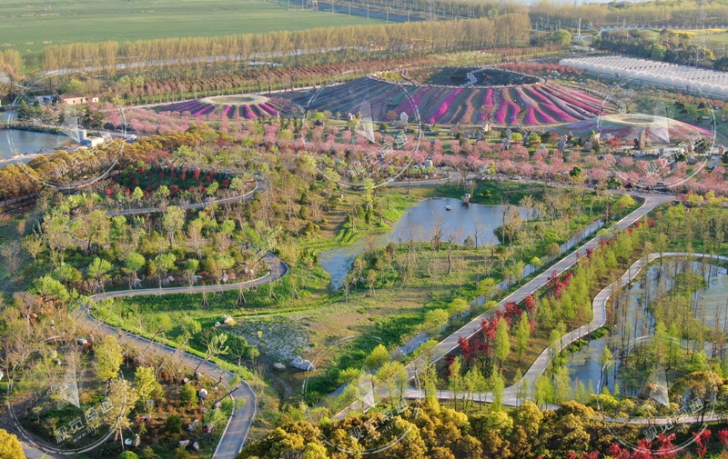 2021年4月4日航拍的洲際夢(mèng)幻島美麗春光。位于通州區(qū)五接鎮(zhèn)開沙島的洲際夢(mèng)幻島晚櫻、杜鵑和芝櫻等多種花兒競(jìng)相綻放,夕陽西下,在陽光的照耀下,夢(mèng)幻島上“夢(mèng)幻夕照”美景如畫。