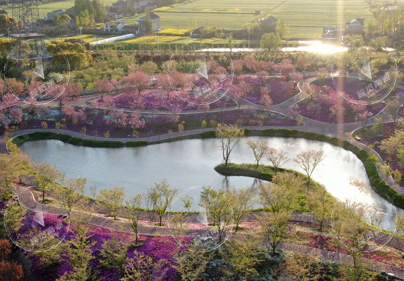 2021年4月4日航拍的洲際夢(mèng)幻島美麗春光。位于通州區(qū)五接鎮(zhèn)開沙島的洲際夢(mèng)幻島晚櫻、杜鵑和芝櫻等多種花兒競(jìng)相綻放,夕陽(yáng)西下,在陽(yáng)光的照耀下,夢(mèng)幻島上“夢(mèng)幻夕照”美景如畫。