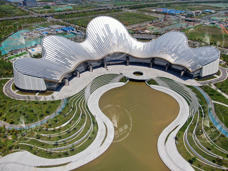 2021年4月26日,南通大劇院、美術(shù)館展露最美新貌。藍(lán)天白云映襯下的紫瑯湖畔綠意盎然,春景迷人。