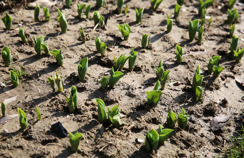 發(fā)布時(shí)間:2023-02-17 編輯:王婷 來(lái)源:視覺(jué)南通網(wǎng)2月16日,嗇園內(nèi)的郁金香幼芽長(zhǎng)勢(shì)喜人。去年12月中旬,嗇園20多萬(wàn)顆郁金香種子陸續(xù)栽植入地。栽種過(guò)程中,工作人員將枯枝落葉粉碎堆肥后制成腐殖土,埋入地下提供養(yǎng)分。他們先后完成方案設(shè)計(jì)、種球篩選、現(xiàn)場(chǎng)放線等多項(xiàng)工作。