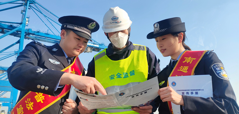 發(fā)布時(shí)間:2023-02-20 編輯:王婷 來源:視覺南通網(wǎng)江蘇省政府令第175號公布了《江蘇省民用船舶搭靠外國籍船舶管理辦法》,將于4月1日起施行。近日,南通邊檢站組織普法宣傳小分隊(duì),深入港區(qū)碼頭一線開展《江蘇省民用船舶搭靠外國籍船舶管理辦法》普法宣傳活動,進(jìn)一步規(guī)范邊檢機(jī)關(guān)對南通口岸民用船舶搭靠外國籍船舶的管理,及時(shí)幫助碼頭企業(yè)了解掌握最新搭靠管理法律法規(guī)。