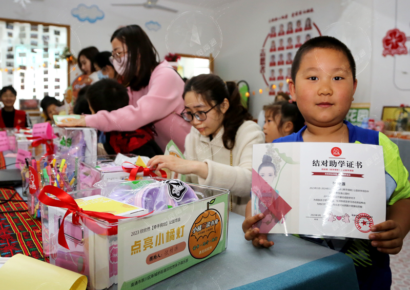 16個(gè)親子家庭為剛結(jié)對(duì)的占里吳貞依歌隊(duì)侗娃們精心準(zhǔn)備了小橘燈(臺(tái)燈)、T恤衫、裙子、洞洞鞋等兒童節(jié)禮物,價(jià)值3000余元?;顒?dòng)中,親子家庭為侗娃們書(shū)寫(xiě)兒童節(jié)家書(shū),為捐贈(zèng)的圖書(shū)貼標(biāo)簽。年逾古稀的退休教師孫福銀還特意為活動(dòng)創(chuàng)作歌曲《小橘燈》。