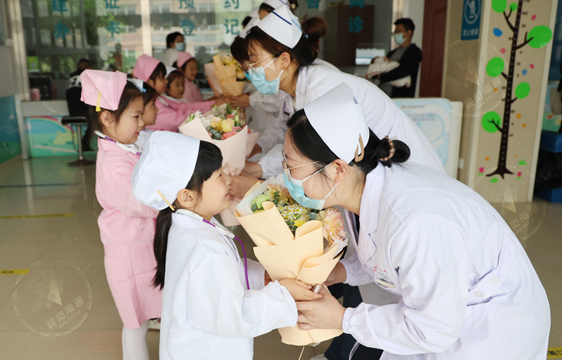 5月10日,五里樹幼兒園開展“今天我來當(dāng)天使國際護(hù)士節(jié)”職業(yè)初體驗活動,幼兒園的孩子們走進(jìn)陳橋街道社區(qū)衛(wèi)生服務(wù)中心,以“望聞問切”的互動形式了解護(hù)士日常工作的重要及艱辛,激發(fā)大家對職業(yè)的崇敬和向往之情,迎接“5·12”國際護(hù)士節(jié)的到來。