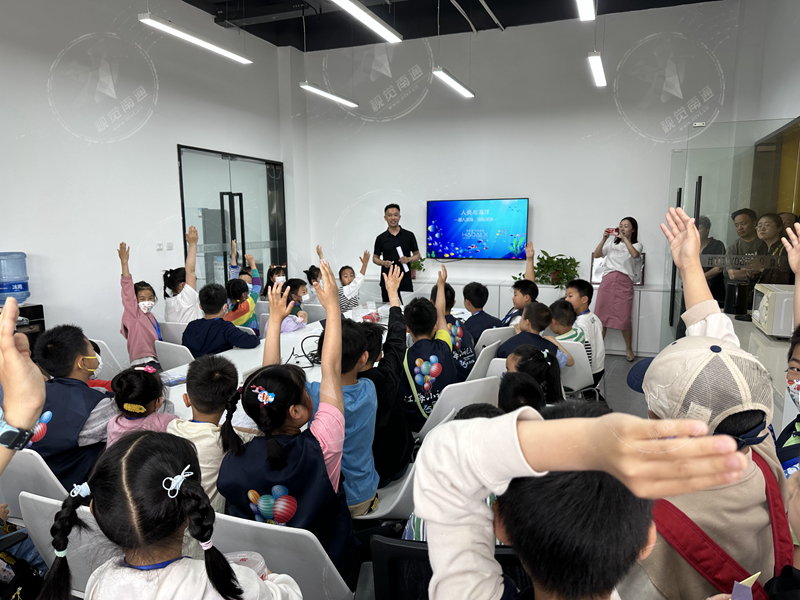 “各位小記者,你們親眼見過的大海是什么顏色?”“不同深度的海里,都有些什么?”“想要潛入深海探秘,會(huì)遇到什么阻礙?”活動(dòng)中,總經(jīng)理廖期龍通過專業(yè)的講解,配以生動(dòng)有趣的圖片和視頻,為小記者們帶來了一堂妙趣橫生的海洋科普課堂。水滴魚、獅子魚、燈籠魚、透明章魚、太平洋桶眼魚……一個(gè)個(gè)生活在深海的神奇動(dòng)物在大屏幕上一一亮相,解開了海底世界神秘面紗的冰山一角;蛟龍?zhí)枴⑸詈S率刻?hào)、奮斗者號(hào)……不同功能和用途的探海利器,讓小記者們?nèi)轿坏赜^察、體驗(yàn)、感受到了海洋科技的魅力。