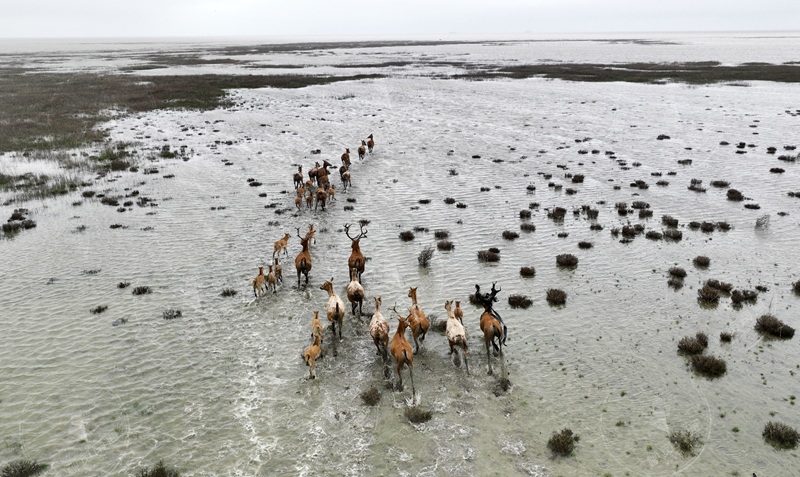 發(fā)布時間:2023-05-23 編輯:王婷 來源:視覺南通網(wǎng)麋鹿喜好沼澤濕地環(huán)境,以青草和水草為食物。如東小洋口,近100平方公里濱海濕地開闊寧靜,人跡罕至,各種水鳥在這里棲息,一人多高的大片草叢和星星點點的潭蕩,為麋鹿提供了豐富的水和食物。“能夠吸引野生麋鹿群到如東來,一方面是因為濱海濕地資源豐富,水草豐美;另一方面,還是得益于沿海地區(qū)生態(tài)環(huán)境持續(xù)得到改善和優(yōu)化?!蹦贤ㄊ腥鐤|生態(tài)環(huán)境局總工程師唐寶清表示,如東是南通的海洋大縣,沿海灘涂總長度位居全省前列。一直以來,如東堅持人海和諧共生的發(fā)展理念,生產(chǎn)、生活、生態(tài)“三生”融合,把如東沿海生物多樣性保護工作與經(jīng)濟社會發(fā)展結(jié)合,打造“三生”融合、人海和諧的發(fā)展新模式。