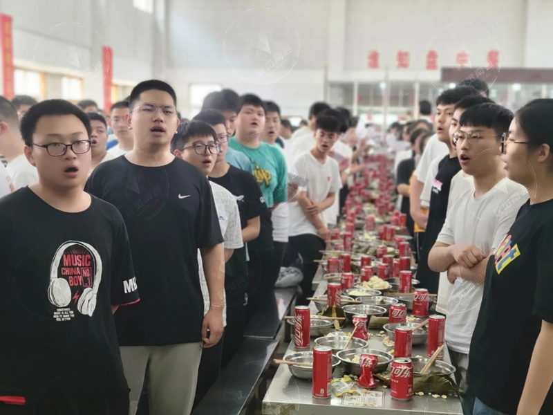 在食堂的飯桌上,學(xué)校為高三學(xué)子準(zhǔn)備了一罐印有名字的定制可樂(lè)。在紅色的可樂(lè)包裝罐身上,還印有“戰(zhàn)無(wú)不勝,金榜題名”八個(gè)大字。