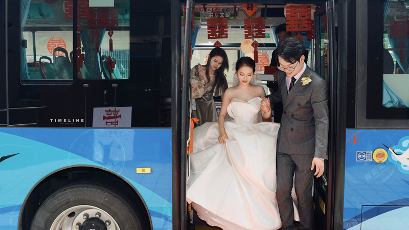 發(fā)布時(shí)間:2023-06-02 編輯:王婷 來(lái)源:視覺(jué)南通網(wǎng)5月27日,來(lái)自啟東飛鶴公交公司的一輛新能源公交車(chē)披紅戴彩、裝飾一新,行駛在啟東市區(qū)馬路上,引得不少路人駐足觀賞。原來(lái),當(dāng)天這輛公交車(chē)被一對(duì)小夫妻租來(lái)作為婚車(chē),詮釋了專(zhuān)屬小兩口的別樣浪漫。