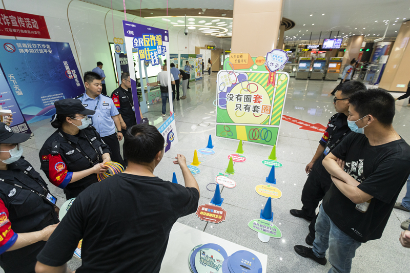 發(fā)布時間:2023-06-28 編輯:王婷 來源:視覺南通網(wǎng)答題抽大獎、反詐套圈圈、識毒連連看、防騙視力表……26日上午,市公安局公交分局、禁毒支隊聯(lián)合崇川區(qū)打詐辦、南通軌道交通集團有限公司、江蘇銀行崇川支行在文峰地鐵站開展“健康無毒,天下無詐”禁毒反詐宣傳活動,別出心裁的宣傳方式,豐富多彩的活動內(nèi)容,吸引不少市民駐足。