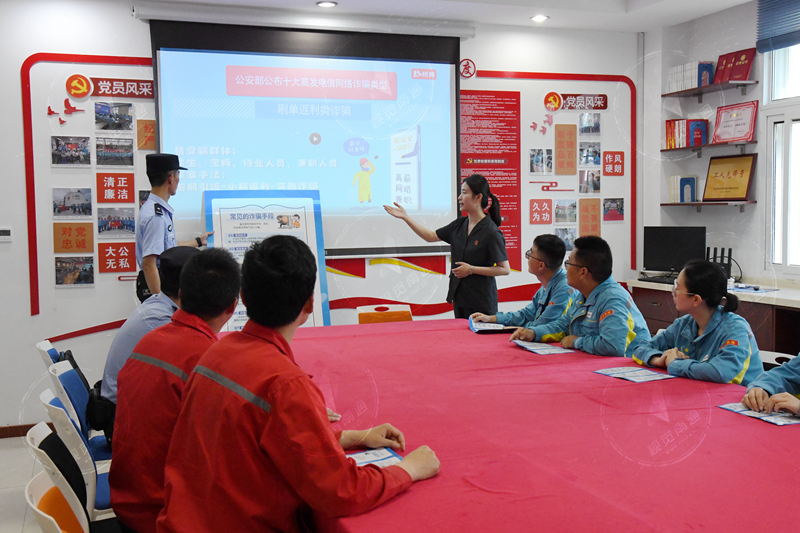 發(fā)布時間:2023-07-07 編輯:王婷 來源:視覺南通網(wǎng)“高利息、高回報存在重大的風(fēng)險隱患。咱們工人掙的都是辛苦錢,千萬不要輕易把自己的資金轉(zhuǎn)賬給不明賬戶?!痹谘罂诟垡夯a頭G3操作平臺上,如東出入境邊防檢查站民警朱鷹鷹用通俗易懂的語言,詳細(xì)講解了電信詐騙、集資詐騙等多種詐騙手法,叮囑工友們?nèi)缬隹梢汕闆r應(yīng)及時報警?!疤焐喜粫桨谉o故掉餡餅,一夜暴富肯定最終血本無歸,蠅頭小利咱堅決不碰!”液化品碼頭工作人員錢國濤說。