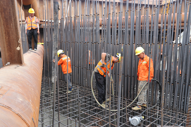 北沿江高鐵啟東段最大跨度連續(xù)梁主墩承臺(tái)首次順利澆筑