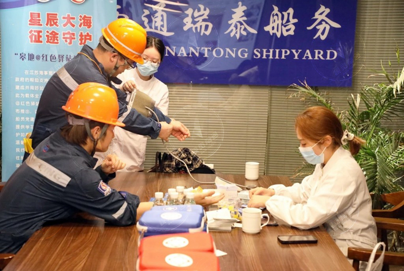 江蘇是船員大省,船員足跡遍布全球各地,是支撐江蘇港口經濟發(fā)展的主力軍。“船員工作期間需要時刻警惕,應對各種復雜水上環(huán)境,而且還要克服長時間航行、作業(yè)的重重困難,身心承受著巨大壓力,因此他們的健康情況需要特別關注?!笔腥簣F委副書記楊帆介紹,在義診過程中我們發(fā)現船員的咨詢主要集中在“三高”、肌肉勞損、外傷、心律失常、泌尿系統(tǒng)疾病等問題上,針對每個人不同情況,相關科室為他們提供了個體化的健康指引和就診建議,同時就船員普遍關心的健康知識、生活習慣、職業(yè)病防治等進行了普及。