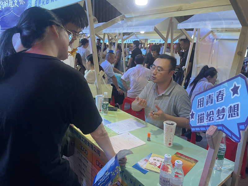 發(fā)布時(shí)間:2023-08-09 編輯:王婷 來(lái)源:視覺(jué)南通網(wǎng)“誠(chéng)聘高管”“有雙休”“有補(bǔ)助”“繳納五險(xiǎn)一金”……人才夜市上,每個(gè)“攤位”前都擺放著崗位需求牌,企業(yè)福利介紹也展示在顯眼位置。一邊是“攤主”們使出渾身解數(shù)“挑燈覓人才”;一邊是求職者們穿梭其中,逛著夜市尋找工作,或詢問(wèn)“攤主”,現(xiàn)場(chǎng)人頭攢動(dòng),熱鬧非凡。與傳統(tǒng)招聘會(huì)不同的是,本次招聘會(huì)設(shè)在熱鬧的夜市區(qū),避開(kāi)了日間高溫天氣和繁忙時(shí)段,將年輕人喜聞樂(lè)見(jiàn)的夜生活場(chǎng)景與求職招聘服務(wù)相融合,把納涼地變?yōu)榧{賢場(chǎng),打造獨(dú)特的交流環(huán)境?;顒?dòng)現(xiàn)場(chǎng)還同時(shí)設(shè)置政策宣傳區(qū)、互動(dòng)打卡點(diǎn)、非遺文創(chuàng)展示等服務(wù)區(qū)。工作人員向求職者發(fā)放政策宣傳頁(yè),提供關(guān)于人才政策、就業(yè)見(jiàn)習(xí)、就業(yè)創(chuàng)業(yè)等政策問(wèn)題,延伸人社服務(wù)觸角。