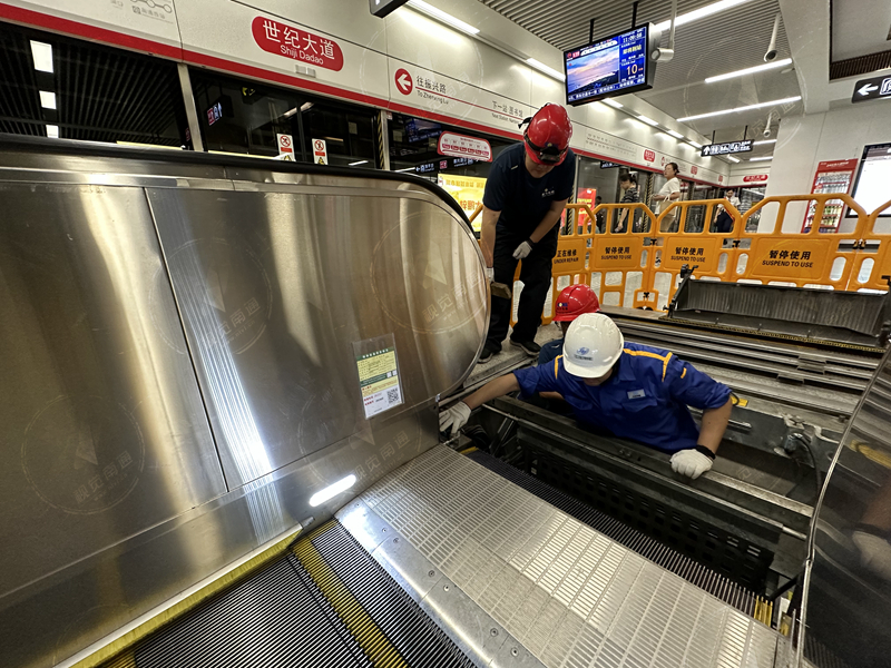 一年一次的強(qiáng)制檢驗(yàn),則是對(duì)電梯日常維保工作是否到位的一次全面“大考”。郁衛(wèi)飛介紹,該院除了對(duì)電梯本體進(jìn)行功能試驗(yàn),還要檢查電梯管理是否有漏洞,督促使用單位、維保單位對(duì)出現(xiàn)的隱患迅速整改,同時(shí)向使用單位宣傳特種設(shè)備使用相關(guān)法律法規(guī)和安全用梯須知,幫助其提升主體責(zé)任安全意識(shí),保障電梯安全運(yùn)行?!按饲?,其他地方有乘客為了趕時(shí)間,還差幾個(gè)階梯就強(qiáng)行跳下扶梯,隔板遭到硬撞擊,觸發(fā)梳齒板開(kāi)關(guān),導(dǎo)致電梯急停。”以此為鑒,該院向軌交公司建議,在上電梯的位置貼上“輕踩”提示標(biāo)語(yǔ),避免因乘客的魯莽行為造成更嚴(yán)重后果。