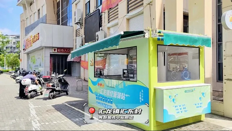 在啟東市匯龍村黨群服務(wù)中心北側(cè),不少市民發(fā)現(xiàn)一個(gè)綠色的小屋有些“眼熟”,偶爾還會(huì)有外賣騎手、環(huán)衛(wèi)工人在小屋內(nèi)休息。
