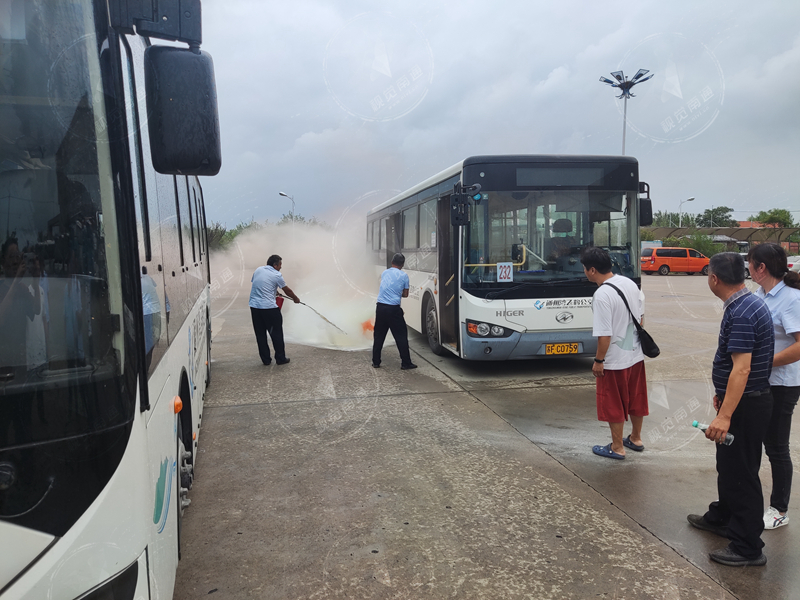 本次演練設(shè)有應(yīng)急處置培訓(xùn)、乘客應(yīng)急疏散演練和全員應(yīng)急操作過關(guān)等三項(xiàng)內(nèi)容。為最大程度還原公交營運(yùn)期間可能遇到的真實(shí)火情,演練現(xiàn)場(chǎng)模擬了一輛正在正常行駛的公交車突發(fā)冒煙起火現(xiàn)象,駕駛員在發(fā)現(xiàn)火情后立即停車打開車門,迅速有序疏散車內(nèi)乘客至安全區(qū)域,并迅速拿起滅火器對(duì)初起之火進(jìn)行了滅火自救,最終撲滅了火情。