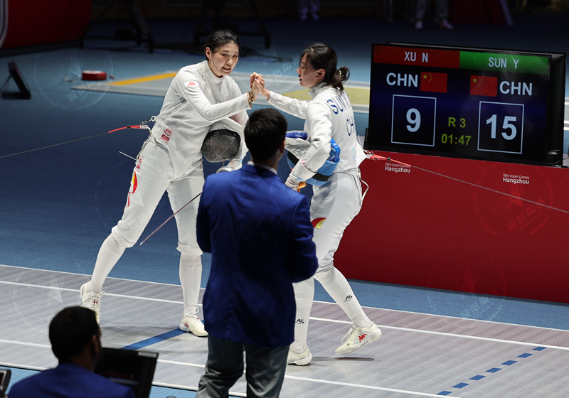 24日,杭州第19屆亞運(yùn)會(huì)女子重劍個(gè)人項(xiàng)目8強(qiáng)全部產(chǎn)生,中國選手孫一文以15:9擊敗隊(duì)友南通姑娘許諾成功晉級(jí)。孫一文下一個(gè)對(duì)手是韓國選手宋世羅。