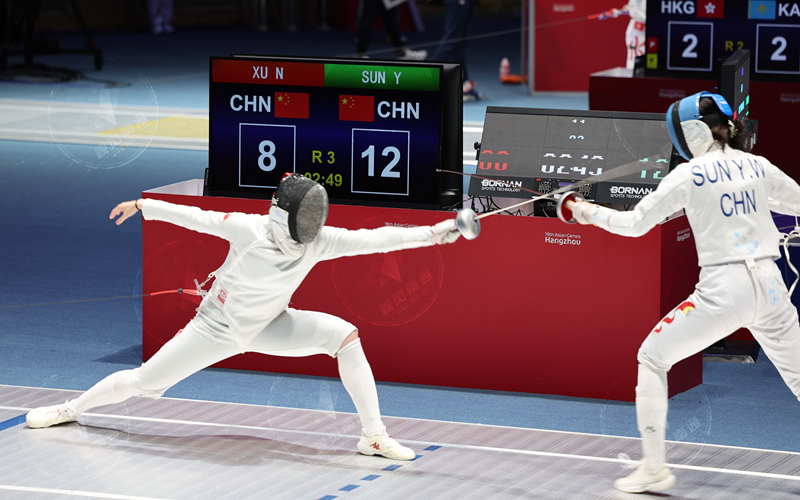 24日,杭州第19屆亞運會女子重劍個人項目8強全部產(chǎn)生,中國選手孫一文以15:9擊敗隊友南通姑娘許諾成功晉級。孫一文下一個對手是韓國選手宋世羅。