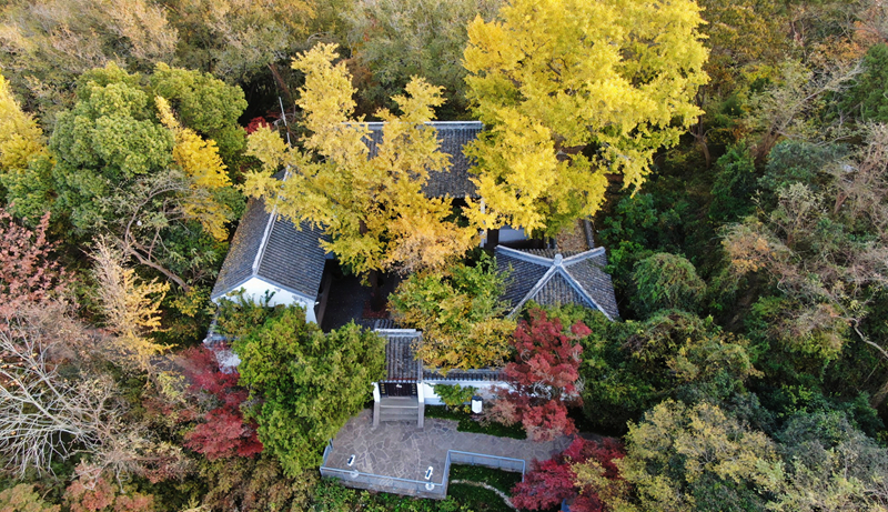 11月26日,無人機(jī)航拍虞樓初冬美景。虞樓位于狼山國家森林公園馬鞍山東嶺,建于1921年,此樓是張謇為緬懷安葬在長江對(duì)岸常熟虞山的恩師翁同龢而修建的,見證了張謇與翁同龢兩位師生狀元篤厚的情誼。