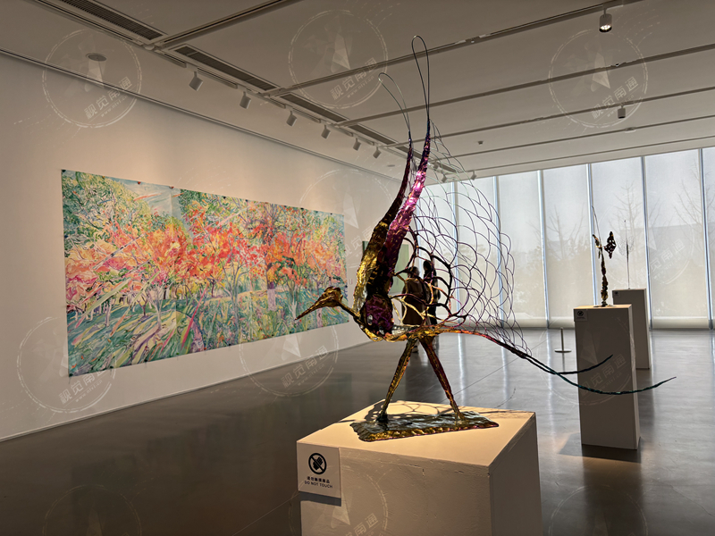本次展覽由上海著名當(dāng)代藝術(shù)家李磊擔(dān)任總策劃,共展出137位(組)藝術(shù)家逾200件具有代表性的當(dāng)代藝術(shù)作品,涵蓋了架上繪畫、架上綜合、雕塑、影像、裝置、多媒體藝術(shù)及數(shù)字繪畫等全方位藝術(shù)媒介。與地板合二為一的河馬雕塑、在門板上創(chuàng)作的繪畫、沉浸式互動(dòng)設(shè)計(jì)、普通事物的裝置重構(gòu)……“奇妙”或許是觀眾對(duì)其的第一印象,繼而產(chǎn)生“好奇”,接著再展開對(duì)幸福的“感知”和“想象”。