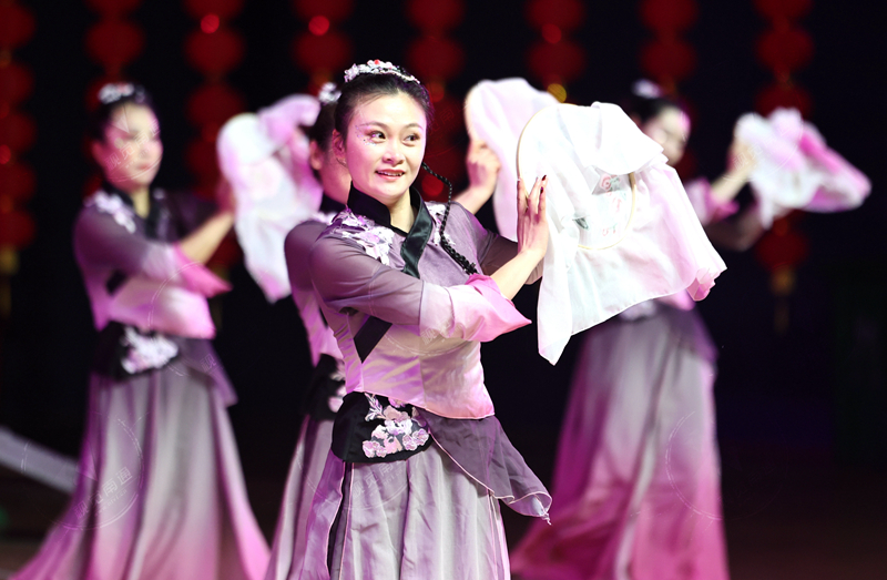 “左邊手往上抬些,再柔美一些……”早上7點(diǎn)40分,崇川區(qū)蘭亭藝術(shù)團(tuán)周衛(wèi)紅正在為隊(duì)員們糾正動(dòng)作。雖然天空飄著雪花,崇川區(qū)蘭亭藝術(shù)團(tuán)、新城橋峰彩藝術(shù)團(tuán)等比賽團(tuán)隊(duì)早早趕到市體育館,化妝、更衣和排練。崇川區(qū)新城橋峰彩藝術(shù)團(tuán)指導(dǎo)老師張欣說(shuō),春節(jié)期間,14名隊(duì)員對(duì)比賽曲目《沂蒙好風(fēng)光》反復(fù)打磨,就是為了給觀眾們送上最好的表演和新春祝福。