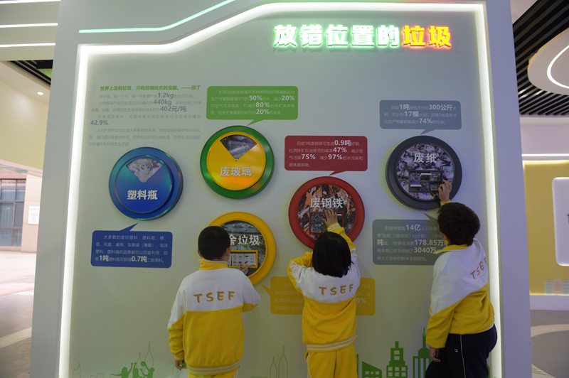 在基地中,隊員們圍繞生活垃圾現(xiàn)狀,為什么要分類、垃圾怎么分類、垃圾去哪兒了等查看了功能廳和宣教區(qū),文字、圖片、影視、互動游戲等多種可視化手段呈現(xiàn)了垃圾分類知識,給大家?guī)砩砼R其境的沉浸式體驗。