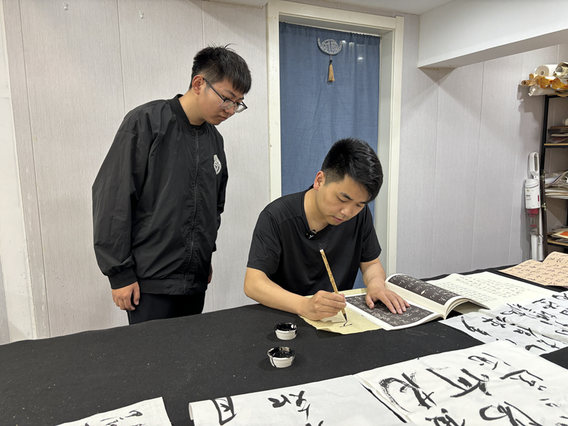 對(duì)于書(shū)法求學(xué)者,他以身示范,發(fā)出經(jīng)驗(yàn)之談。他說(shuō):“一方面要致敬經(jīng)典,向經(jīng)典學(xué)習(xí)。好的書(shū)法,都是要以學(xué)習(xí)古代經(jīng)典法帖為基礎(chǔ);另一方面要不怕吃苦、持之以恒,以虛心要學(xué)的態(tài)度,堅(jiān)持去練去寫。付出之后,肯定會(huì)有所收獲?!?/p>