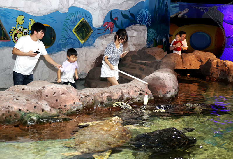 盛夏季節(jié),海底世界內(nèi)的大多數(shù)動物朋友處于“養(yǎng)尊處優(yōu)”的狀態(tài),最忙碌的當(dāng)屬海豹、海獅,因為它們是南通海底世界的表演明星。此時,海豹表演正在精彩進(jìn)行中,前來觀賞的游客將看臺擠得滿滿當(dāng)當(dāng)。飼養(yǎng)員毛微華說,海豹、海獅雖然怕熱,但暑期是旅游旺季,7月以來每天表演場次從以往的3場增加到4場。“入夏以來,海豹、海獅的飲食量有些下降,以往一天三頓吃6.3—7.5公斤的青占魚、青魚,目前調(diào)低到5.4公斤,食物以青占魚為主,另外加一些小黃魚,以豐富它們的營養(yǎng)元素?!笨蹬握f。