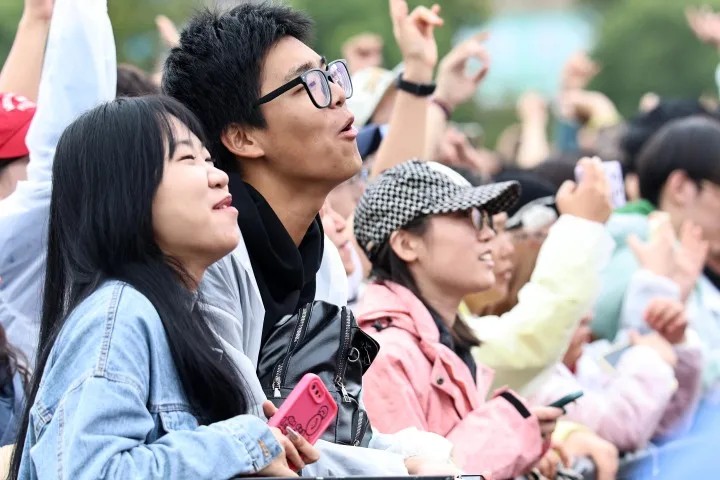 “像我這樣優(yōu)秀的人,本該燦爛過一生……”臺上吉他聲、鼓點聲此起彼伏,臺下歌唱聲、歡呼聲不絕于耳,觀眾的多巴胺被充分喚醒,現(xiàn)場的氣氛持續(xù)升溫。