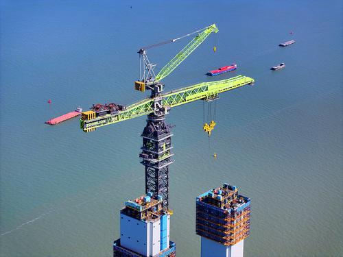 世界最大跨度橋梁張靖皋長(zhǎng)江大橋南航道橋南主塔高度接近200米