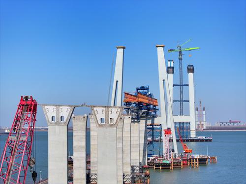 世界最大跨度橋梁張靖皋長江大橋南航道橋南主塔高度接近200米