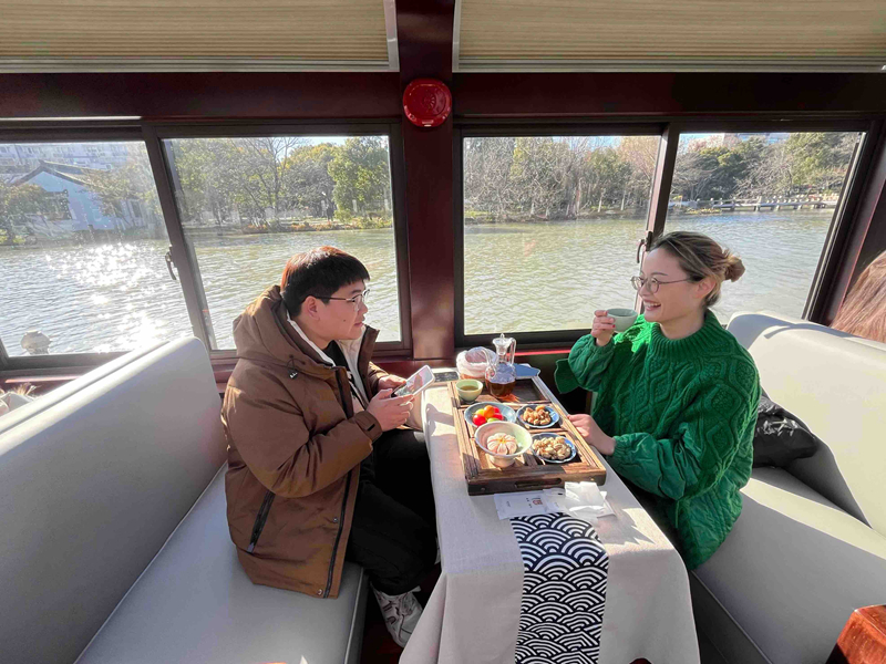 慈航狼山游船上的沙龍會(huì)議堪稱項(xiàng)目的一大亮點(diǎn),它打破常規(guī),把會(huì)議的精彩延伸至戶外。以郁郁蔥蔥的狼山為天然背景,以怡人的濕地風(fēng)光為靈動(dòng)點(diǎn)綴,以創(chuàng)新的會(huì)務(wù)配套為堅(jiān)實(shí)載體,以獨(dú)特的慈航狼山游線為鮮明特色,讓每一場(chǎng)會(huì)議都別具一格。顧楚表示,“一些市民游客會(huì)選擇在慈航號(hào)上進(jìn)行商務(wù)會(huì)談,以脫離傳統(tǒng)寫字樓里的辦公形式,讓商務(wù)社交更加舒適自然”。